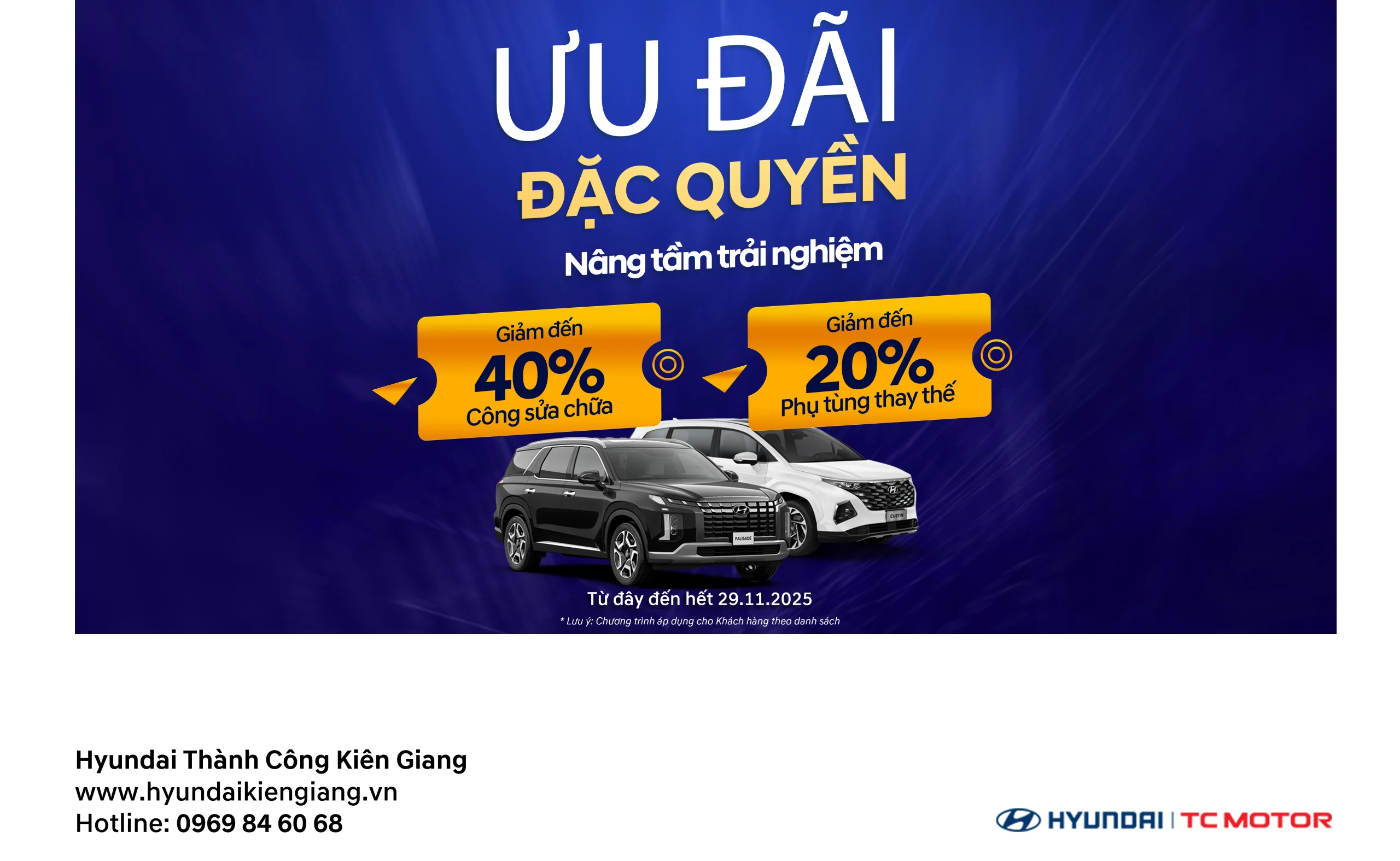 Trong tháng 11, chương trình Ưu Đãi Đặc Quyền – Nâng Tầm Trải Nghiệm tại Hyundai Kiên Giang hỗ trợ khách hàng: